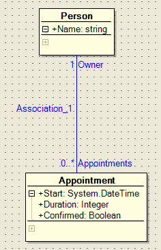 We have a Person class and an Appointment class, with an association between them where an Appointment can belong to only one Person, and a Person can have zero to many Appointments. Note however, that the Appointment has a Confirmed attribute. You may decide that you need to deal with only confirmed appointments so often, that you want another association between these two classes that only displays appointments that have the Confirmed attribute set.