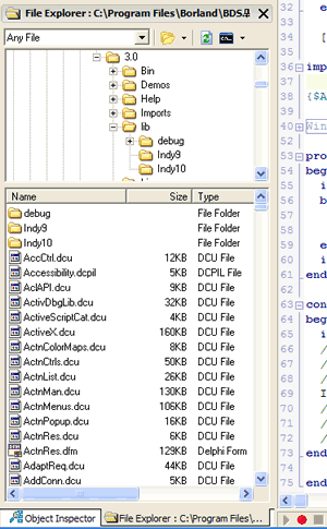 FileExplorer is a free add-in for Delphi 2005, which provides Explorer-like functionality in a dockable