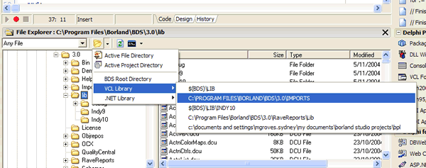 - Jump to the current Project directory, the active File's directory, or any directory in your VCL or .NET Library Path.
