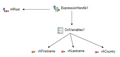 What this screenshot shows is I’ve created a connection between the vhFirstname VariableHandle component and a Variable called vFirstname. I’ve done the same for LastName and Country.