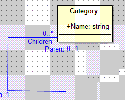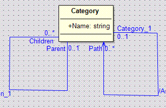 Anyway, this was relatively easy to implement in a model: a Category class that has an auto-association (ie. an association to itself) such that a Category can have 0..* child categories, and a Category can have 0..1 parent categories. It was also relatively easy to set up in ASP.NET so I could browse my way up and down these categories.